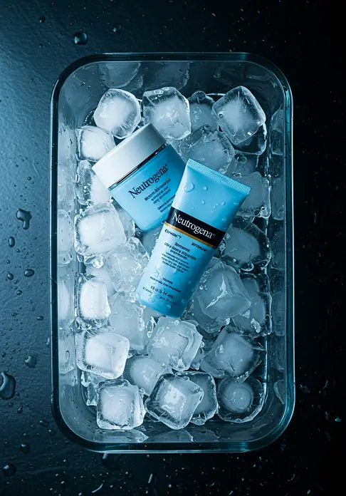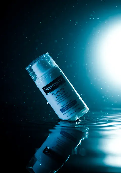 Neutrogena Skincare is renowned for its hydrating products. My creative direction uses a simple setup and lighting to put the product in the spotlight, emphasising water ripples, melting ice droplets, and hydration in the air. This approach highlights the effective yet gentle formulation of the Hydro Boost collection, focusing on its water-based formula, skin hydration, and plumping effects.