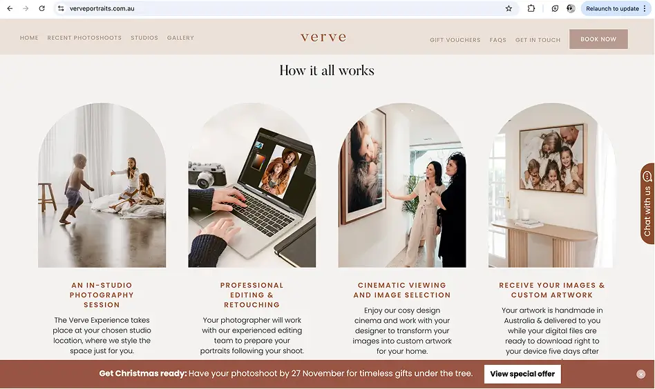 Verve Portraits is a luxury family photography studio. As the in-house Graphic Designer at Verve Portraits, I create both digital and print materials that support marketing campaigns, client engagement, and brand growth. My work includes high-converting landing pages, EDMs, website and blog design, seasonal offer collaterals, postcards, booklets, and style guides, ensuring a consistent and cohesive brand experience across all media. I collaborate closely with marketing, copywriters, and developers to produce designs that not only look polished but are strategy-focused to drive engagement, loyalty, and conversion.